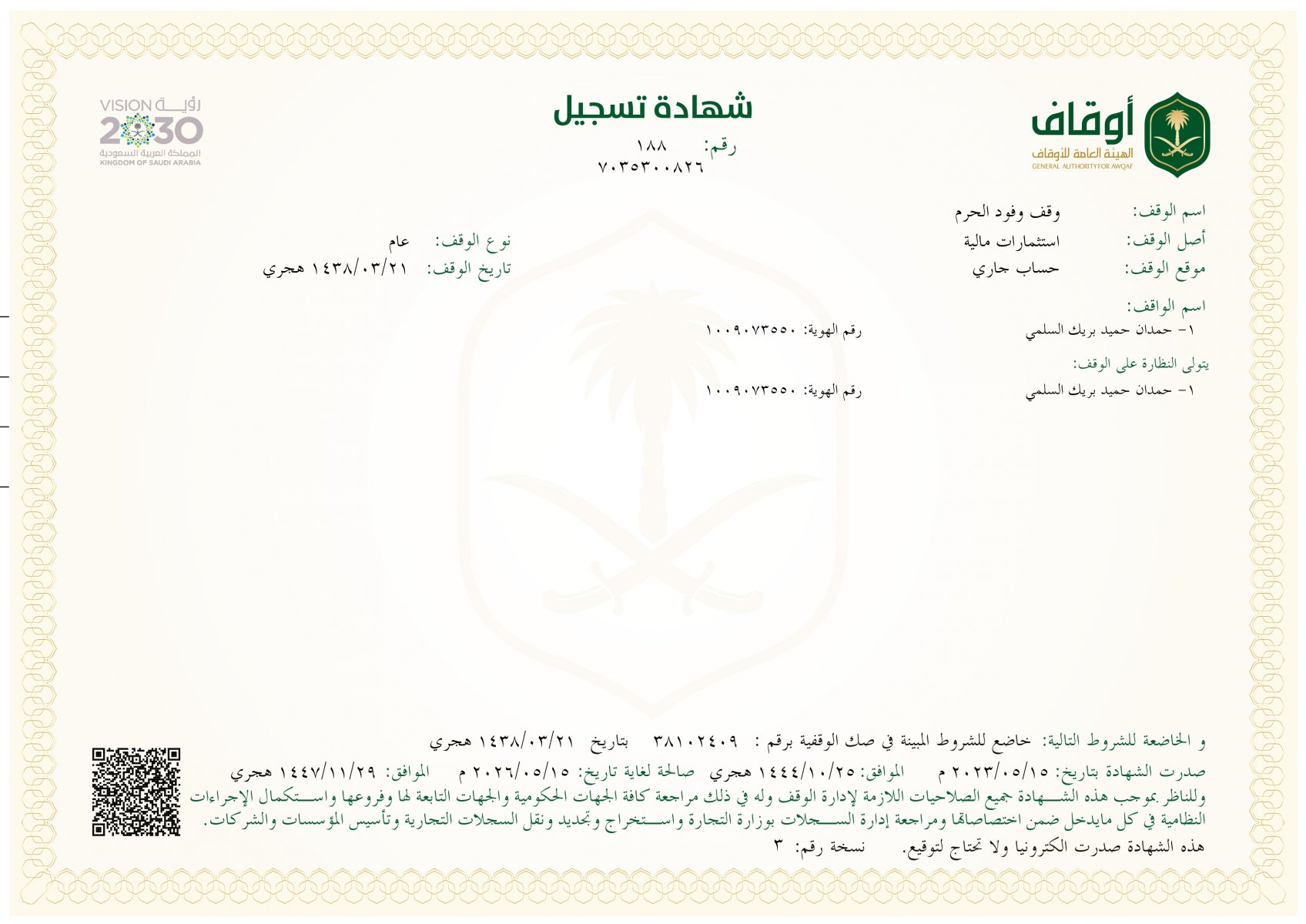 شهادة التسجيل